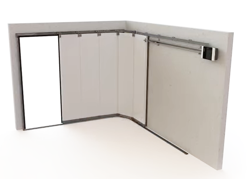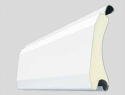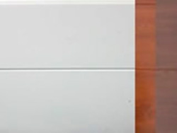 Puerta compuesta de paneles de 40 mm de espesor, con interior fabricado con poliuretano expandido de alta densidad libre de CPF, una junta de EPDM incrustada en el núcleo del panel y placas de refuerzo de acero galvanizado, inferior y superior, en el interior del panel.